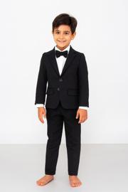 Küçük beylerin zarif ve şık görünmesi için özel olarak tasarlanmış bu takım, düğün, nişan, sünnet, bayram, doğum günü ve tüm özel günlerde mükemmel bir tercih. Siyah rengin asaletiyle hazırlanan takım, modern ve klasik çizgileri bir arada sunar.