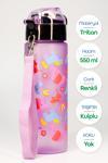 Telvesse Çocuk Su Matarası Tritan Pipetli Su Şişesi Unicorn Okul Suluğu Pipetli BPA'sız 550 mL Mor T0101