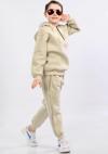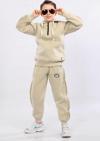 Çocuk Üç İp Şardonlu Kışlık Kalın Kapüşonlu Eşofman Takımı