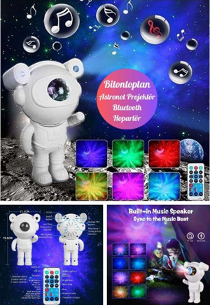 Adm Store Kumandalı Gece Lambası Yeni Nesil Bluetooth Hoparlörlü Astronot Yıldız Gezegen Projektörü Büyük Boy