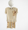 Deniz havasını ve sahil enerjisini yansıtan bu yazlık takım, çocukların sıcak günlerde hem rahat hem de şık görünmesini sağlıyor. Pamuklu tişört ve çizgili şorttan oluşan ikili set, kahverengi palmiye desenleriyle tropikal bir dokunuş katıyor. Günlük kullanımın yanı sıra tatil valizlerinin de vazgeçilmez parçası olacak.Ürün Özellikleri