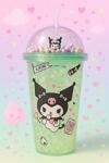 Kesene Çocuklar İçin Sevimli Renkli Boncuklu Kuromi Tasarımlı Pipetli İçecek Bardağı Suluk Yeşil 2647