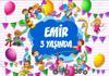 Çocuklar ve Bnalonlar Temalı Doğum Günü Afişi - 35x50 Cm