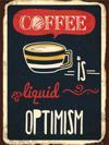 “Kahve sıvı iyimserliktir” mesajını taşıyan bu retro tasarım tablo, gününü kahveyle aydınlatanlar için birebir! Vintage çizgilerle hazırlanan bu dekoratif ürün hem şık hem motive edici.