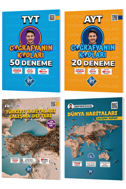 Coğrafyanın Kodları TYT-AYT Coğrafya 50+20 Deneme & Türkiye-Dünya Haritaları Çalışma Defteri Seti KR Akademi