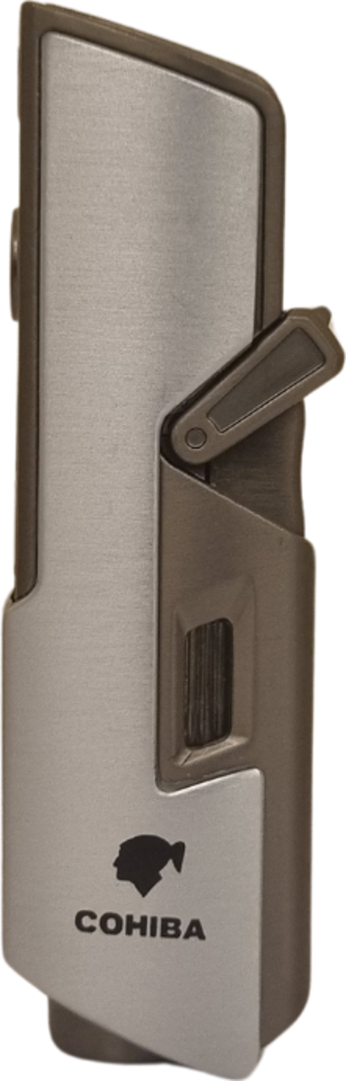 Cohiba Tek Torch Pürmüz Gümüş-Gunmetal Dahili Delici & İğne Metal Puro Çakmağı