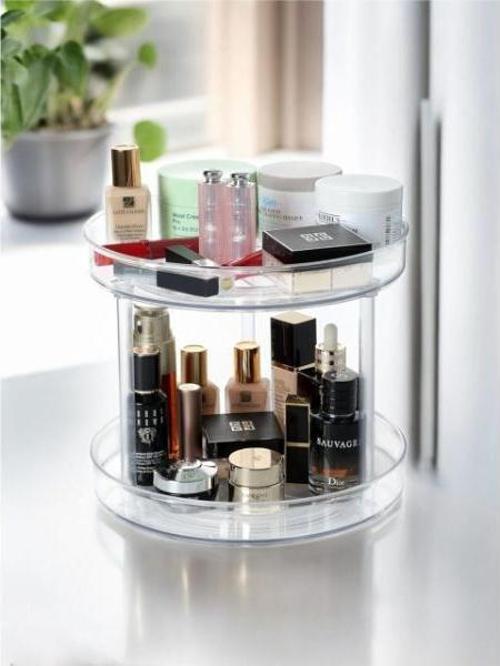 Çok amaçlı dönebilen 2 katlı organizer, 360° dönebilme özelliği sayesinde mutfakta, banyoda, makyaj masasında veya ofis ortamında düzeni sağlamak için pratik bir kullanım sunar. 23x22 cm boyutunda tasarlanmış olan bu organizer, dayanıklı ve kaliteli plastik malzemeden üretilmiştir. İki katlı yapısı sayesinde baharatlık, kozmetik ürünleri, temizlik malzemeleri, takı ve daha birçok eşyayı düzenli bir şekilde saklamaya imkân tanır. Döner taban sistemi sayesinde aradığınız ürüne kolayca erişebilirsiniz. Şık ve modern tasarımıyla hem işlevsel hem de dekoratif bir çözüm sunar.