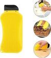 Dokulu silikonlu tasarım spatula fırınlanmış can sıkıcı kirleri temizler, yumuşak silikon kıllara sahip sünger yüzeyi sabunlar ve bulaşık kalıntılarını tezgah masa vb gibi temizlemek istediğiniz yüzeyden sıyırır İçerisine bulaşık deterjanı koyma alanı sayesinde birçok hamleyi tek bir seferde yapmış olarak zaman kazanmanın mutluluğunu yaşayabilirsiniz