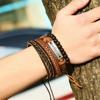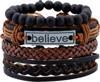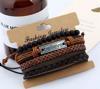 Tesbihane Çok Katmanlı Deri&Metal Alaşım Kombinasyonu Etnik Tasarım Güven Yazılı Retro Erkek Bileklik