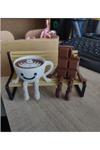 Gizmurstore Çok Sevimli Bank Üzerinde Çikolata Ve Espresso Biblo Seti / 3'lü Dekoratif Figür Hediyelik Çeyizlik