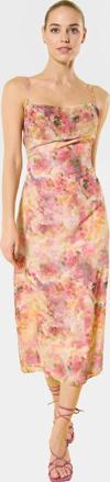 Yaz aylarının vazgeçilmez parçası olacak bu çok renkli soyut desenli elbise, şifon kumaşıyla benzersiz bir konfor sunuyor. A-line kesimiyle her vücut tipine uyum sağlayan elbise, sırtındaki bağlama detayıyla da şıklığını tamamlıyor. 128 cm boyuyla midi uzunluğunda olan elbise, hem günlük hem de özel davetler için ideal bir seçim.