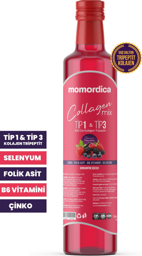 Momordica Collagen Mix - Tripeptit 500 Dalton Tip 1 & Tip 3 Kolajen, Selenyum, Folik Asit, Çinko, B6 Vitamini
