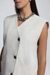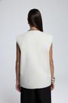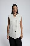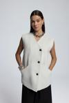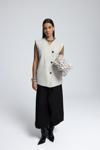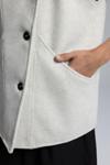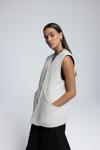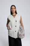 Oversize formda, hafif düşük kol, kup ve cep detaylı. Kruvaze kapamalı, düğmeli, düğme ve astarlı yelek.