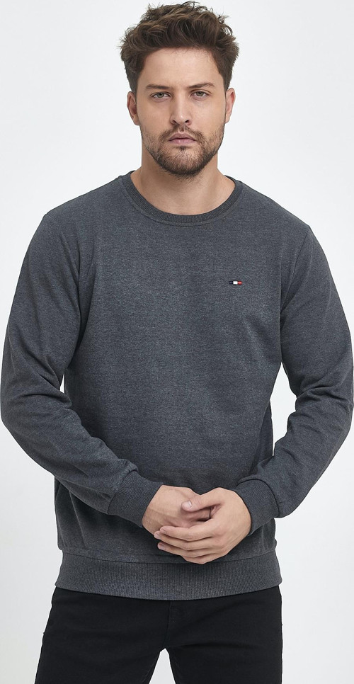 Comeor Erkek Antrasit Bisiklet Yaka Nakış Detaylı Regular Fit Sweatshirt CMRE70
