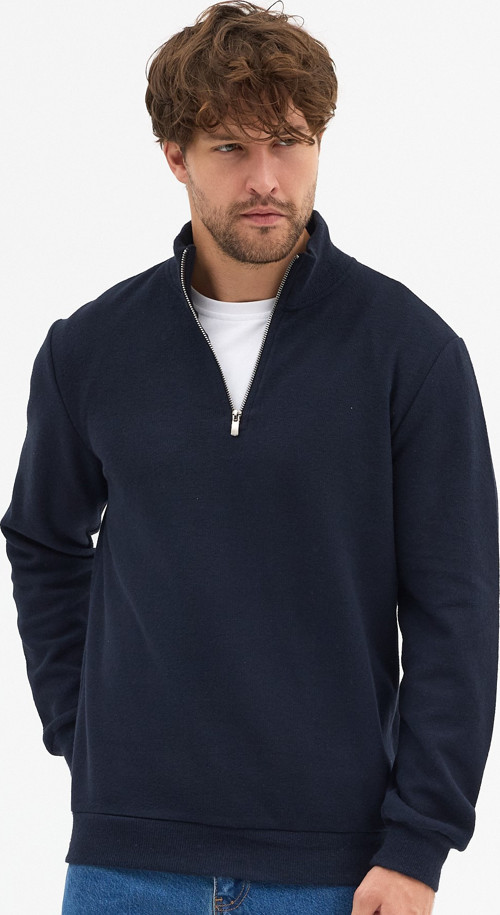 Comeor Erkek Lacivert Standart Fit Normal Kesim Pamuklu Yarım Fermuarlı Dik Yaka Pamuklu Sweatshirt