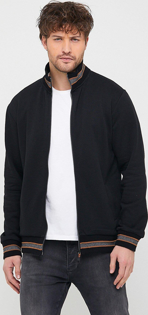 Comeor Erkek Siyah Regular Fit Dik Yaka Fermuarlı Uzun Kollu Hırka