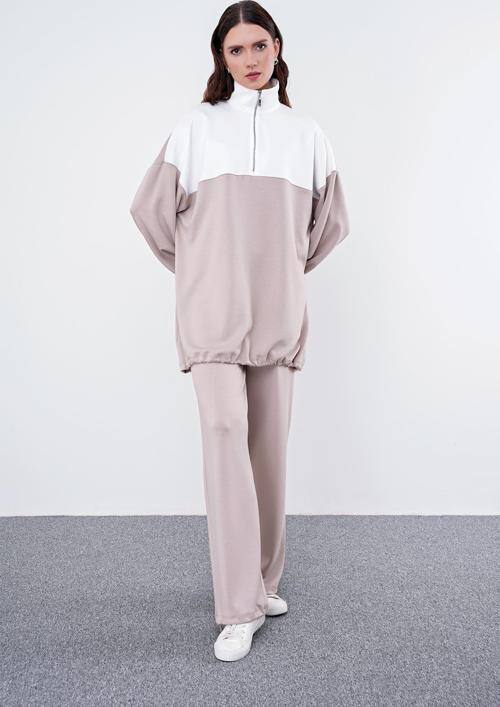 Comfort Renk Bloklu Bej/Beyaz Sweatshirt T-1467 Özellikleri