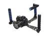 Çift sap, daha fazla stabilizasyon çekmeye olanak tanır. Kolayca taşıyabileceğiniz küçük katlanabilir tasarım çekim stili Uzatılabilir arka kol LCD monitör, Işık, Mikrofon veya diğer aksesuarlar için 1/4 vida bir sürü Tüm el sapları ve eklem dönebilen ve ayarlanabilir. Tüm el tutamaklarında kaymaz dinlenme pedi Ağırlık: 53,5 oz / 1.5kg Paket boyutu : 12.2x9.4x3.7 / 31x24x9.5cm (Katlanmış) Paket içeriği: