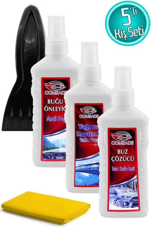 Oltamix COMRADE Kışlık Oto Araç Bakım Seti 5li Buğu Önleyici Yağmur Kaydrıcı Buz Çözücü Sprey Buz Kazyıcı