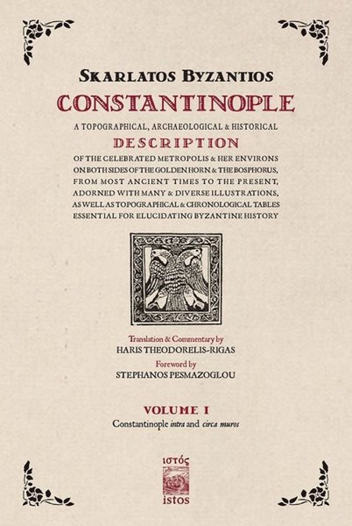 Written in 1851 – 1869, Skarlatos Byzantios' three-volume masterpiece constitutes a feat of 19th c. scholarship, presented here for the first time in an annotated English translation. Drawing on Classical, Byzantine, Western European and Ottoman sources, Constantinople covers a vast period of over two and a half millennia, from the mythical foundation of Byzantium to Skarlatos' own time. A true polyglot and a keen observer, Skarlatos guides the reader through the neighbourhoods, monuments and social practices of his native city, assisted by detailed references to major historical events, personalities and long-forgotten anecdotes. His scholarly interests span across an impressive array of disciplines: political and social history, literature, architecture, epigraphy, urban planning, demography, ethnography, art and folklore. Above all, Skarlatos is a self-avowed devotee of the City of cities.