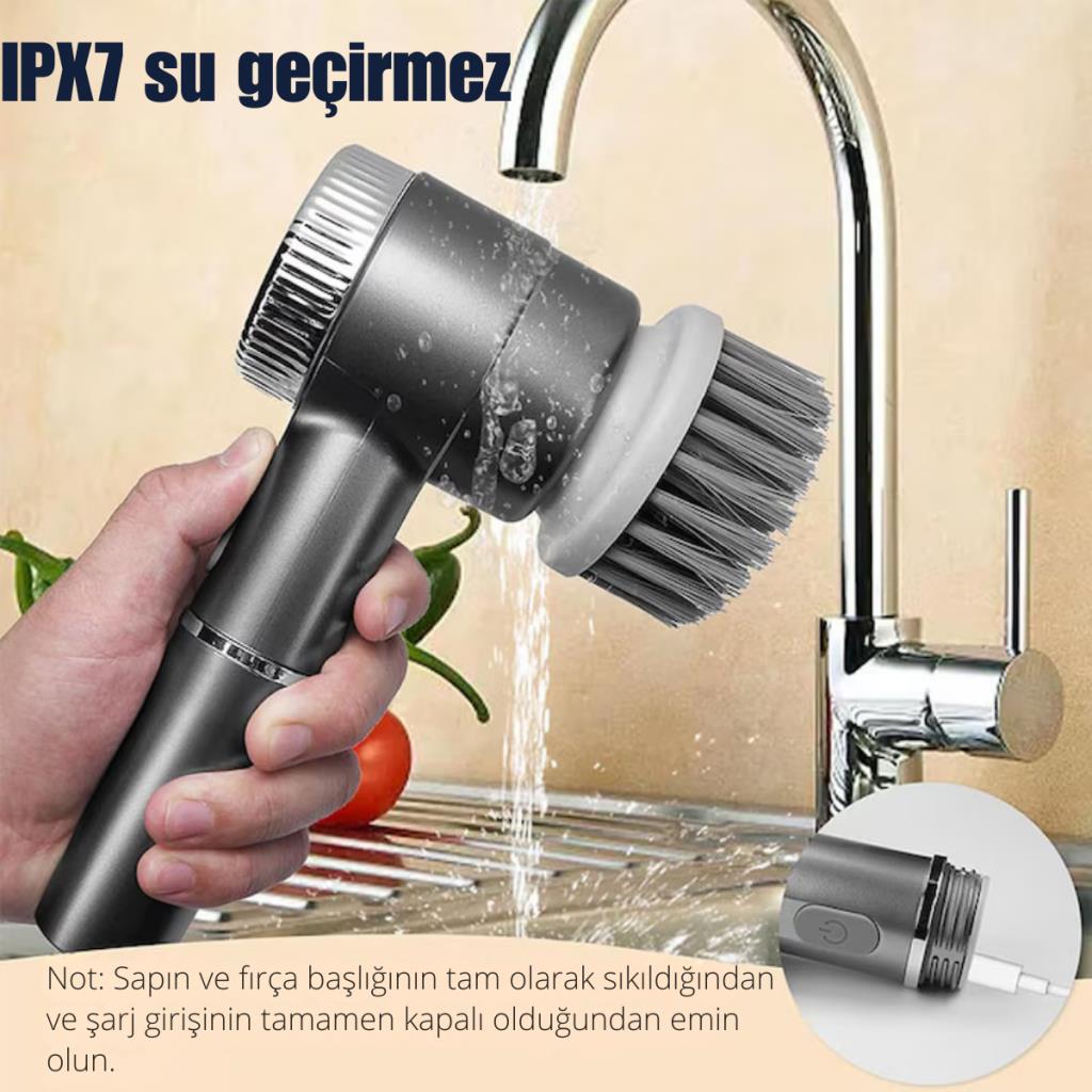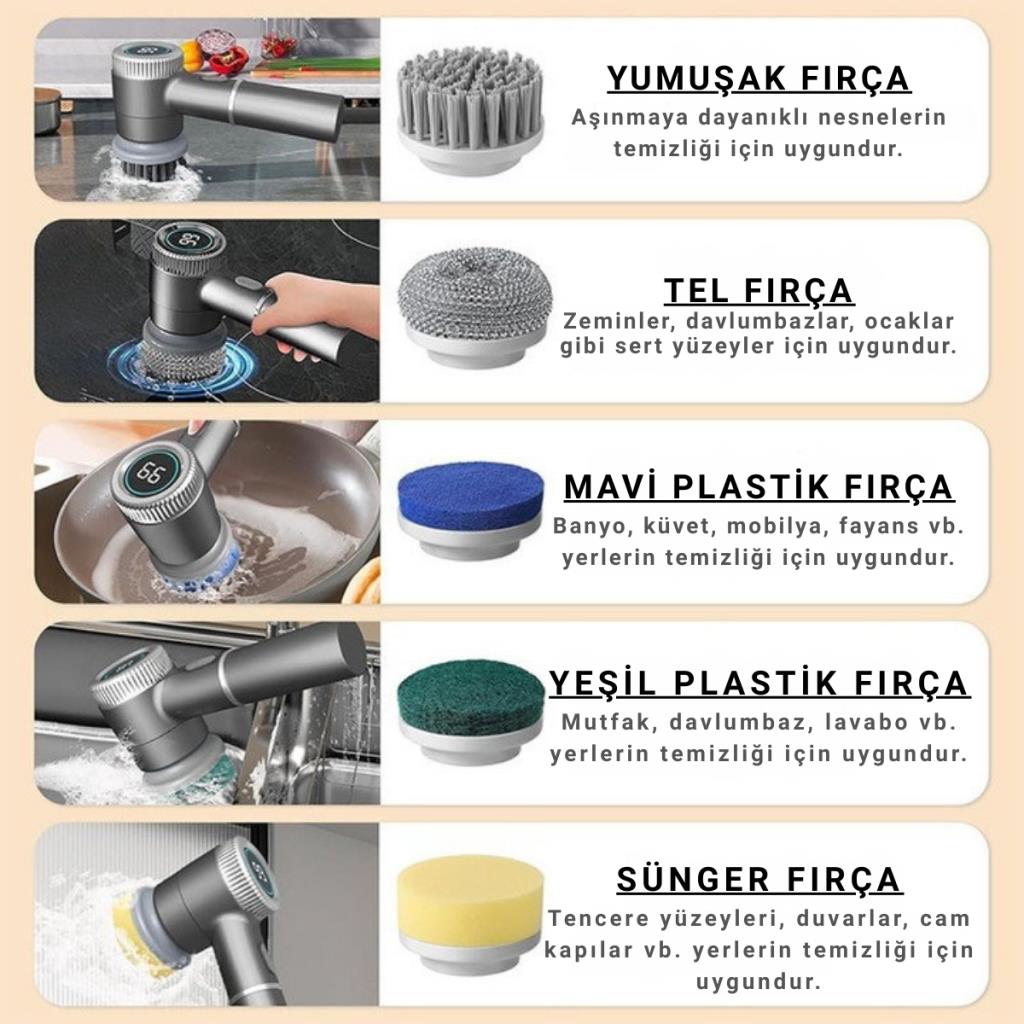 Coofbe 2400RPM Hızlı Şarjlı Değiştirilebilir 5 Başlıklı Profesyonel Temizlik Fırçası Mutfak Lavabo Banyo Temizlik Fırça