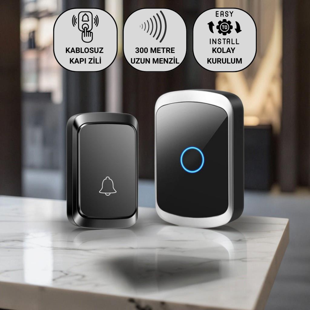 Kablosuz Kapı Zili – 300 Metre Çekim Mesafesi – Şık Tasarım & Kolay Kurulum