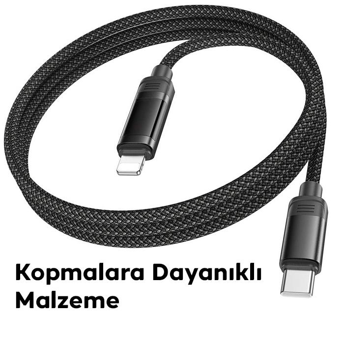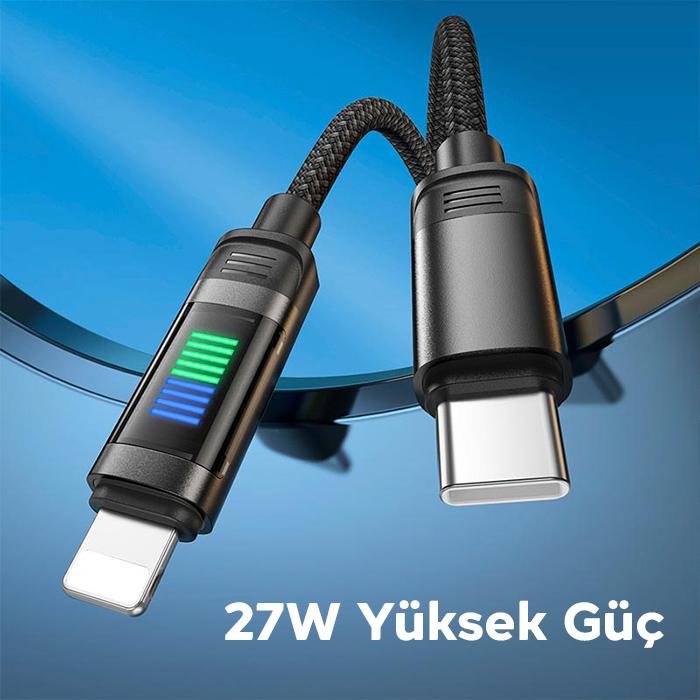 Coofbe Super Şarj Örgü Halar 27W Type-C to İphone Şarj Kablosu İphone 11 12 13 14 Pro Max Şarj Kablo