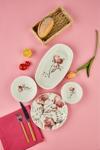 Cooker 14 Parça Porselen Kahvaltı Takımı – Şık Desenli Kayık, Pasta, Kase Ve Reçellik Seti