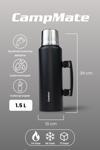 Cooker 1.5 Litre Çift Katlı Çelik Termos-24 Saat Sıcak, 48 Saat Soğuk, Kulplu (Kamp, Piknik, Ofis, Seyahat)