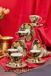 Cooker markasının zarif tasarımıyla dikkat çeken altın yaldızlı 6'lı porselen kahve fincan takımı, kahve keyfinizi bir üst seviyeye taşıyor.