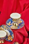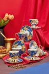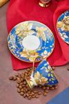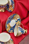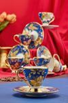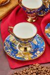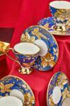 Her bir fincan, mavi rengi ve altın yaldız detaylarıyla şıklığı ve lüksü bir araya getiriyor.