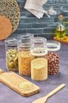Şeffaf cam gövdesi, içindeki malzemeyi kolayca görmenizi sağlar. Kapak tasarımı sayesinde içeriğinizi taze ve güvenli bir şekilde muhafaza edebilirsiniz. Kavanoz, mutfakta saklama, pişirme veya servis amaçlı kullanılabilir.