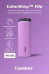Cooker markasının paslanmaz çelikten üretilmiş 400 ml kapasiteli mug termosu, içeceklerinizi 6 saat sıcak veya 6 saat soğuk tutma özelliği ile dikkat çeker.