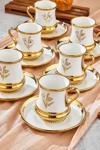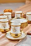 Şık Tasarımlı 6'lı 220 ml Porselen Çay Fincanı Seti - Altın Yaldızlı - Hediye Seçeneği