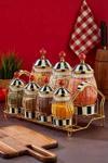 Set içerisinde 7 adet cam baharat kavanozu bulunur. Siyah-beyaz kapak tasarımı, baharatlarınızı estetik ve fonksiyonel bir şekilde saklamanızı sağlar. Hava geçirmez kapaklar, baharatlarınızın tazeliğini ve aromasını uzun süre korur.