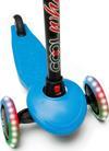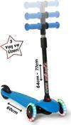 Ürünün ayak basma yerinin alt kısmından frene kadar olan alan, metal boru ile güçlendirilerek scooterın dayanıklılığı arttırılmıştır. Ön iki tekerleği led ışıklıdır. Işıklar tekerlekler döndükçe yanmaktadır. 3-5 yaş arası için önerilir. Maksimum taşıma kapasitesi 30 kg'dır. Minimum 64 maksimum 77 cm olmak üzere 3 kademeli yükseklik ayarı yapılabilmektedir. Direksiyonu bisiklet direksiyonu gibi hareket kabiliyetine sahiptir.