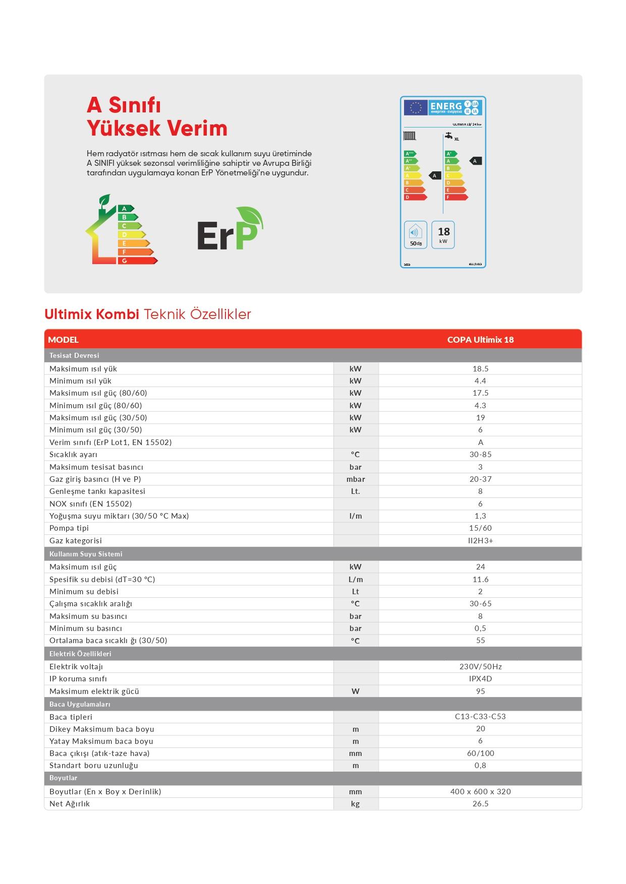Copa Ultimix Premix 18/24 kW Tam Yoğuşmalı Kombi