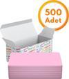 500 adet Pembe not kartları, 100'lük olarak kutulanarak gönderilmektedir.