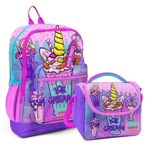 Coral High 2li Set Milkshake Desenli Okul Çantası Beslenme 23749