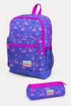 Coral High 23112 Dört Bölmeli İlkokul Çantası ve Üç Bölmeli Kalemlik Seti - Mavi Pembe Flamingolar