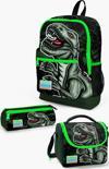 Coral High Kids Koyu Yeşil Siyah Dinazor Desenli 3’lü İlkokul Erkek Çocuk Çanta Seti