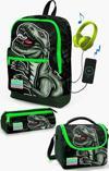 Coral High Kids Koyu Yeşil Siyah Dinazor Desenli USB'li 3’lü Okul Çanta Seti - Erkek Çocuk