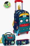 Kids Lacivert Civit Robot Desenli Çekçekli 3'lü Çanta Seti SET0123380