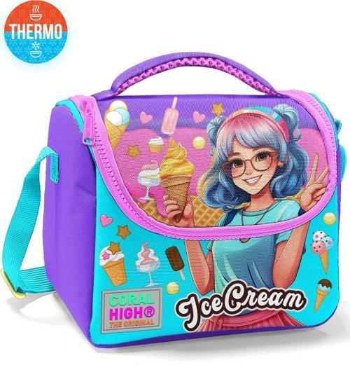 Coral High Kids Lila Turkuaz Dondurma ve Anime Desenli Thermo Beslenme Çantası 11789