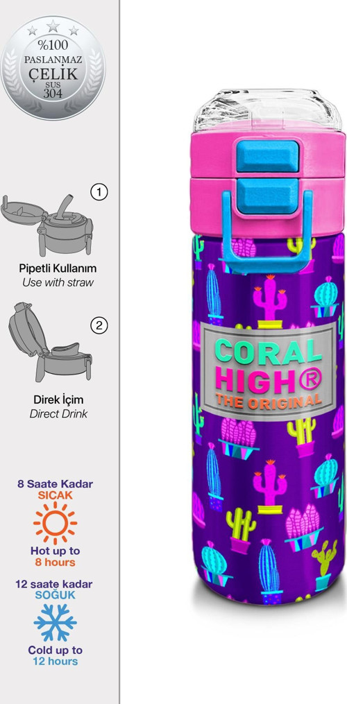 Coral High Çift Fonksiyonlu Pipetli ve Direkt İçim Matara - 500 ml