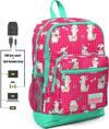 Kids Neon Mercan Alpaka Desenli USB Şarjlı Kulaklık Çıkışlı Okul Sırt Çantası 23268