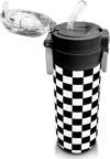 Coral High Kids Siyah Beyaz Dama Desenli Pipetli ve Direkt İçim Çelik Termos 500 ml 31877