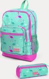 Coral High 23111 Dört Bölmeli İlkokul Çantası ve Üç Bölmeli Kalemlik Seti - Yeşil Flamingolar