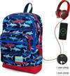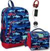 Coral High Okul Çantası ve Termal Beslenme Çanta Seti - Erkek Çocuk Mavi Köpekbalığı USB ve AUX Çıkışlı