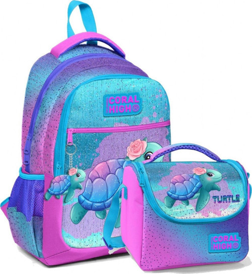 Coral High Üç Bölmeli İlkokul ve Ortaokul Sırt Çantası ve Beslenme Çantası Okul Seti
